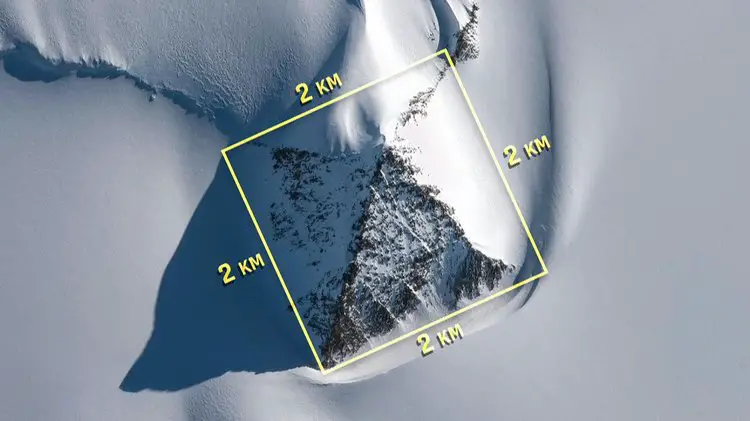 En 2016, des images capturées par satellite ont révélé une formation particulièrement curieuse émergeant de l’épaisse couche de glace. Pour certains chercheurs, la géométrie parfaite de cette structure ne laisse aucune place au doute : il s’agirait d’une pyramide d’origine humaine.