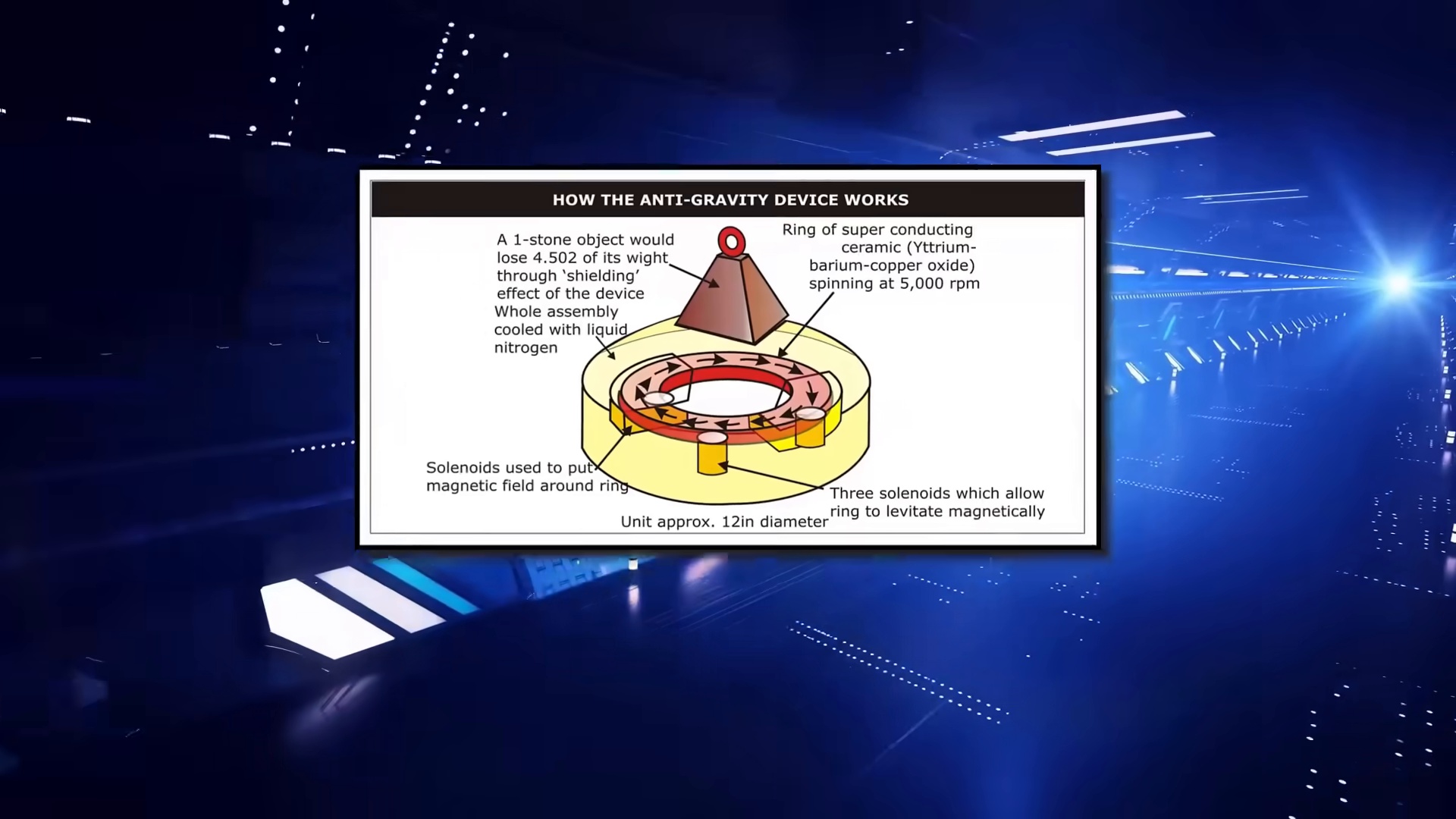 Parmi ces inventions, on trouve un générateur d’ondes gravitationnelles à haute fréquence, un supraconducteur à haute température induit par piézoélectricité, un générateur de champ électromagnétique capable de dévier les astéroïdes, et surtout, un vaisseau utilisant un dispositif de réduction de masse inertielle.