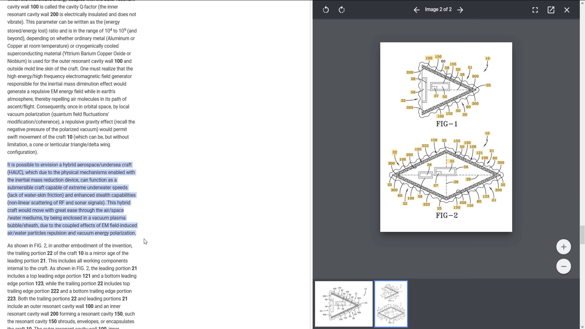 Ce dernier brevet décrit un engin hybride aérospatial et sous-marin. Grâce à son dispositif de réduction de masse, il pourrait fonctionner sous l’eau à des vitesses extrêmes, sans friction avec l’eau et avec des capacités furtives améliorées. L’engin se déplacerait avec une grande facilité dans l’air, l’espace et l’eau en étant enveloppé dans une bulle de plasma sous vide. Bien que ces concepts semblent tout droit sortis d’un film de science-fiction, le directeur technique de l’entreprise de l’aviation navale américaine s’est personnellement porté garant de cette technologie, affirmant que d’autres nations développaient déjà des capacités similaires.