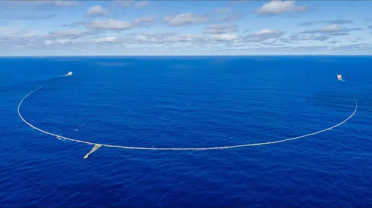 Le Système 03 impressionne par ses dimensions colossales. Il s’agit d’une barrière en forme de « U » mesurant 2,5 kilomètres de long, tractée par deux navires. Cette structure agit comme un entonnoir géant qui concentre le plastique flottant à la surface de l’océan pour le diriger vers une zone de rétention. Bien qu’elle paraisse petite à l’échelle de l’océan, cette poche de collecte fait en réalité cinq fois la taille d’un bus scolaire.