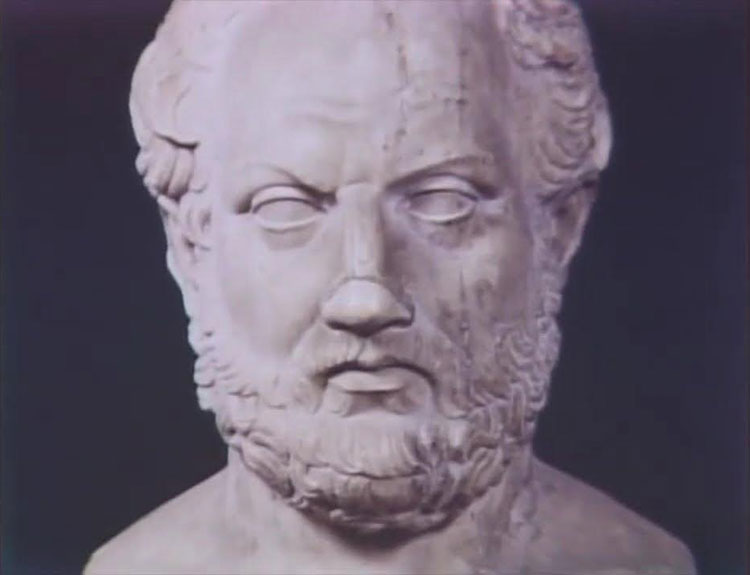 Parallèlement, les philosophes de la nature, appelés physiciens, tentaient de percer les mystères de la création depuis le sixième siècle avant notre ère. Anaximandre suggérait que les humains provenaient de l’eau et avaient évolué par étapes. Hippocrate, fondateur d’une célèbre école de médecine, a appliqué cette approche scientifique à l’épilepsie, alors appelée « maladie sacrée » :